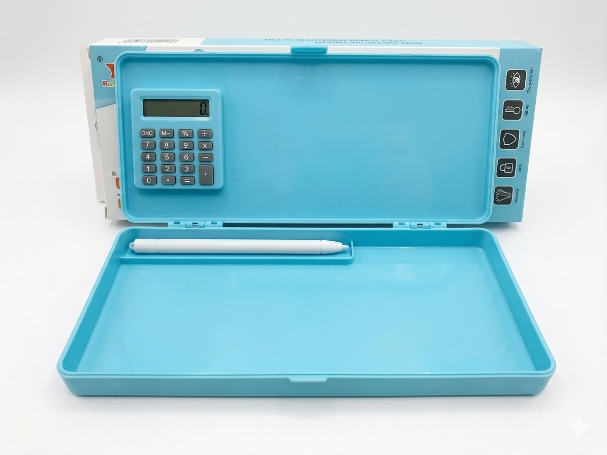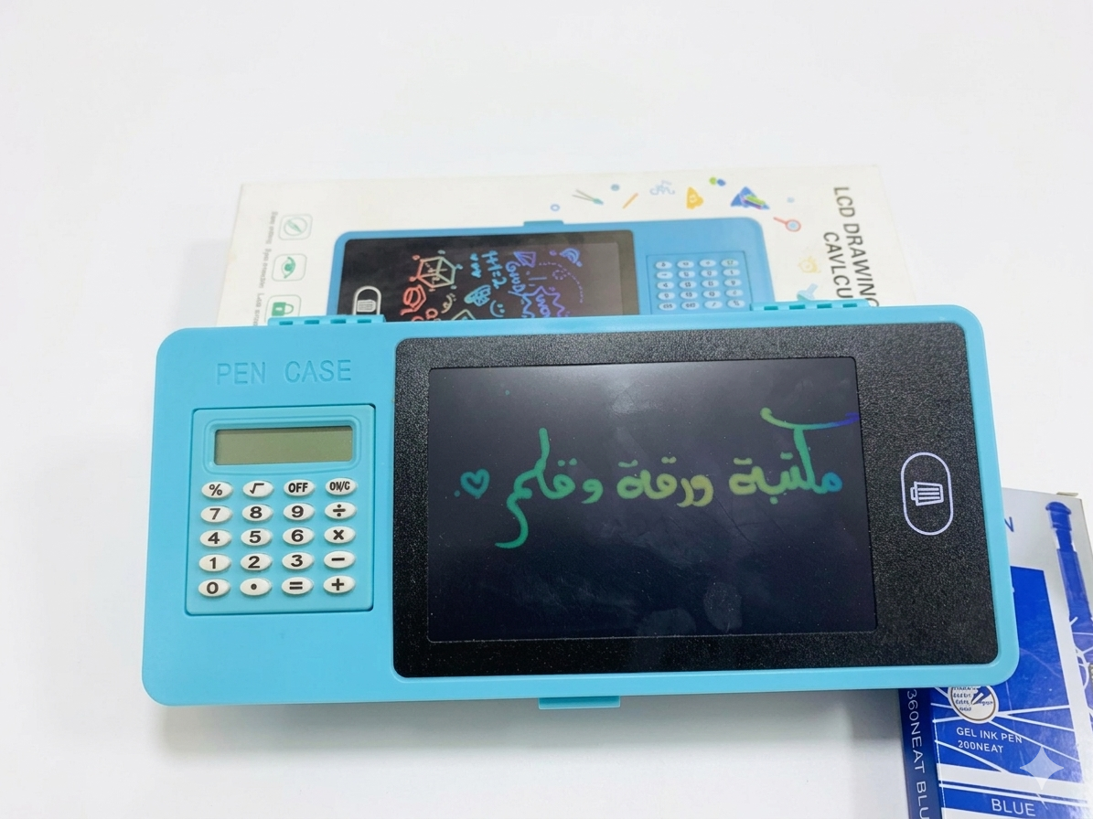 مقلمة مزودة بشاشة LCD للكتابة والرسم مع زر لمسح الشاشة بسرعة. كما تحتوي على آلة حاسبة مدمجة تساعد في إجراء العمليات الحسابية أثناء المذاكرة