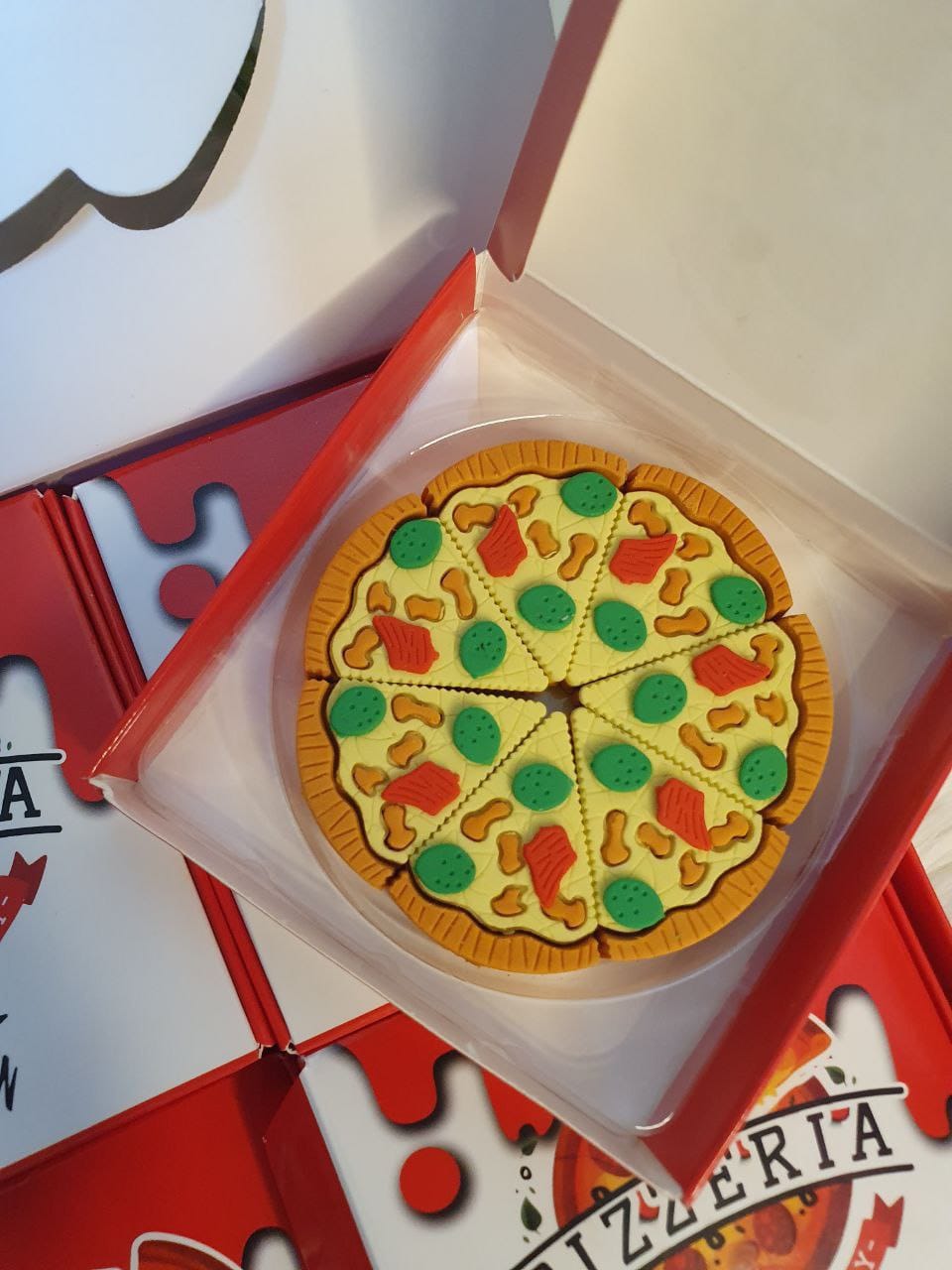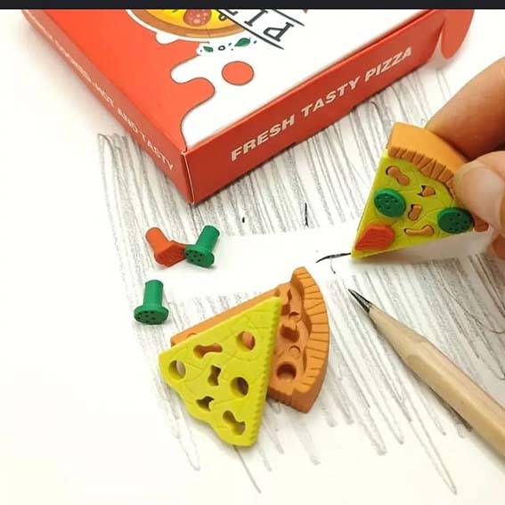 علبة اساتيك علي شكل بيتزا ✨🍕 تصميم مميز، تمسح بسهولة وتدي لمكتبك لمسة مختلفة.